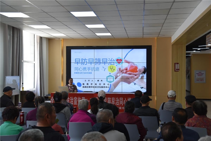 “日常生活中应该坚持的抗癌生活方式有改变不良生活、选择个体化防癌体检……”4月14日,乌海市海南区拉僧仲街道新苑社区活动室座无虚席,一场由海南区拉僧仲卫生服务中心联合海南区疾控中心举办的肿瘤防治健康讲座吸引不少居民前来听讲。